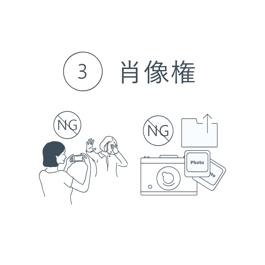 (3)肖像権- 他人から無断で写真を撮られたり その写真を無断で公表・利用されたりしないように