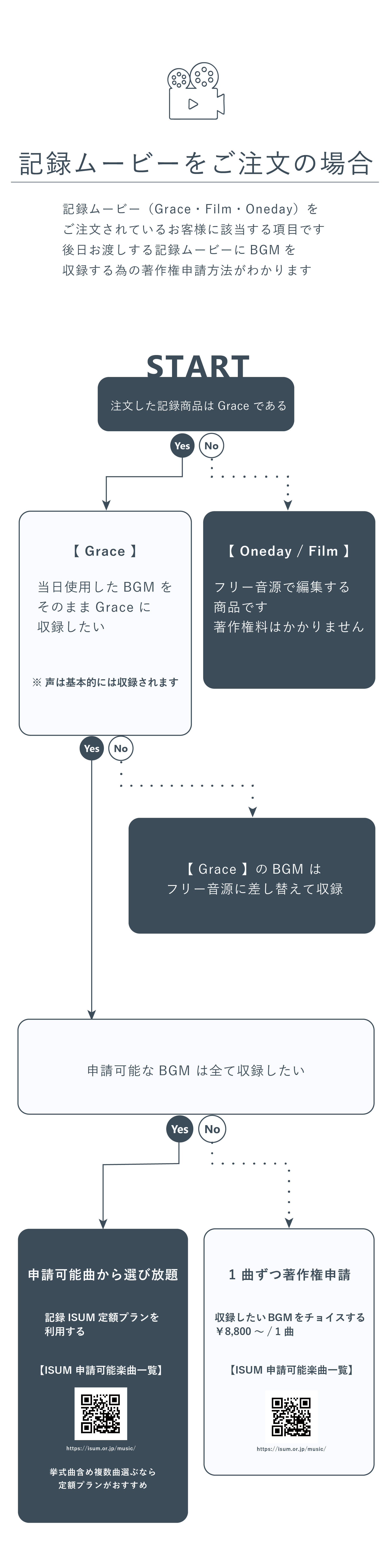 ※1 ISUM管理楽曲以外の曲の場合は 著作権フリー音源に差し替えいたします