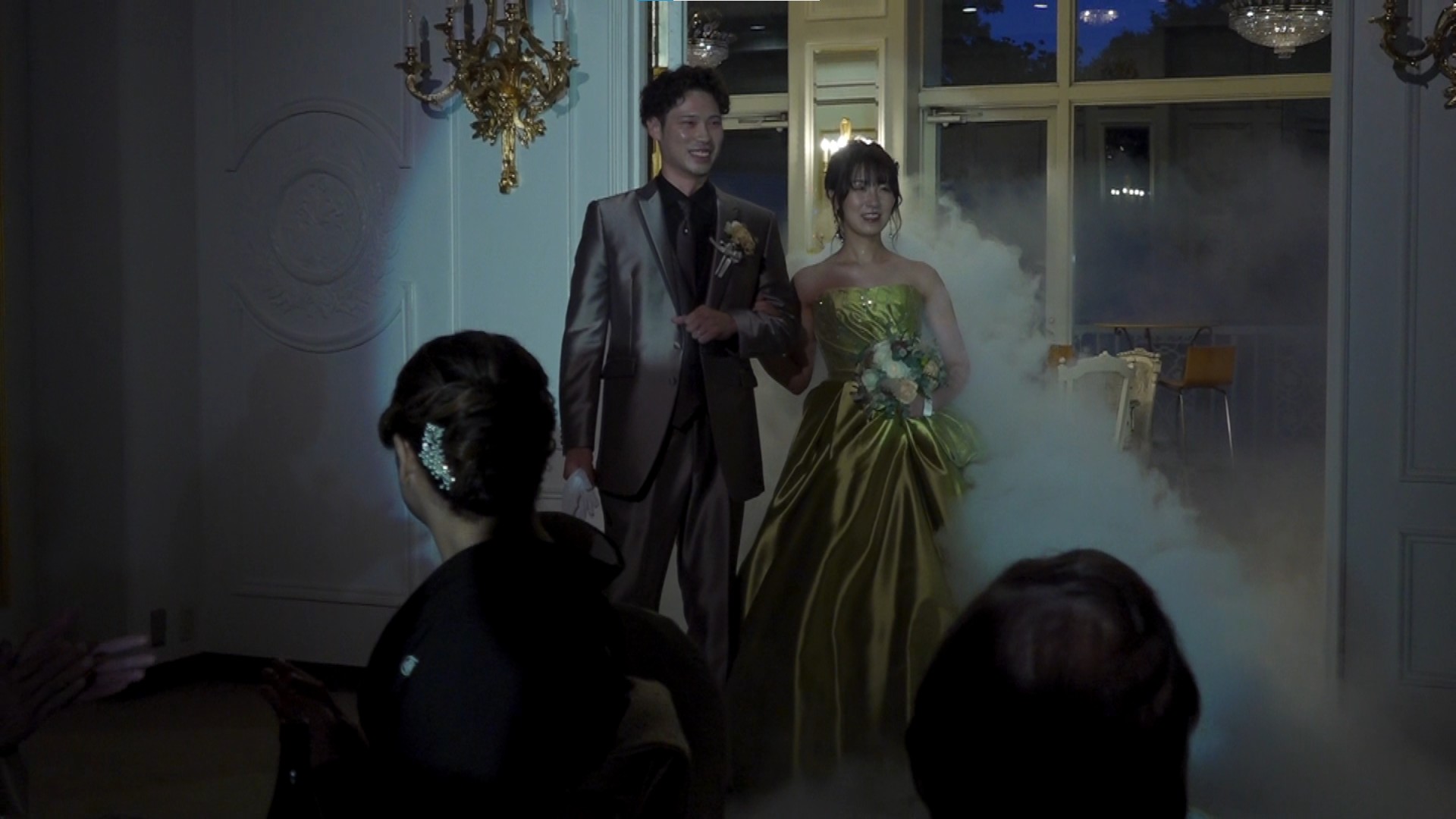 挙式から披露宴中盤あたりまでのハイライトを当日会場で上映